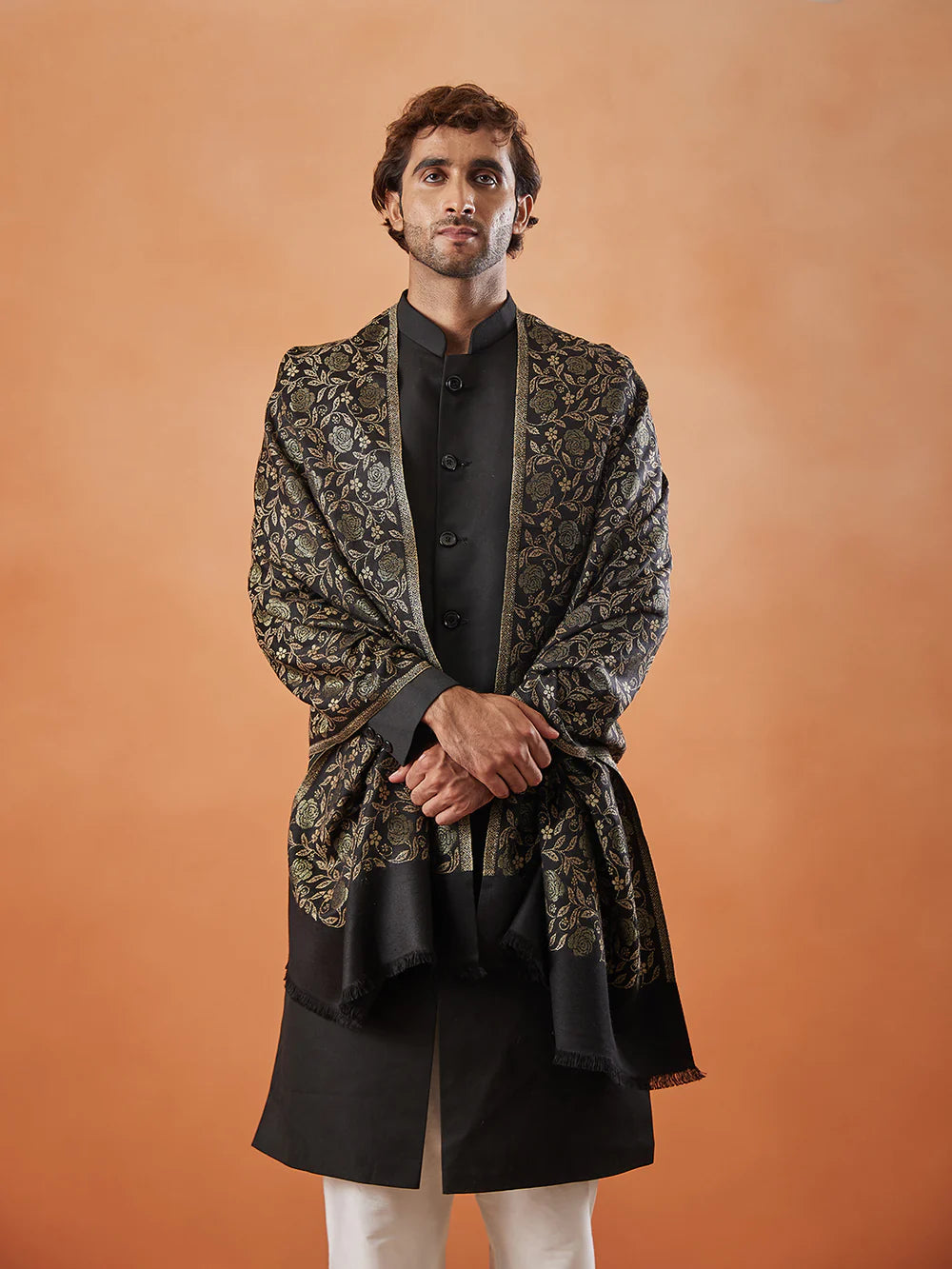 Male Option: Black Kaani Stole (Size 28x80 Inches, 71x203cm)