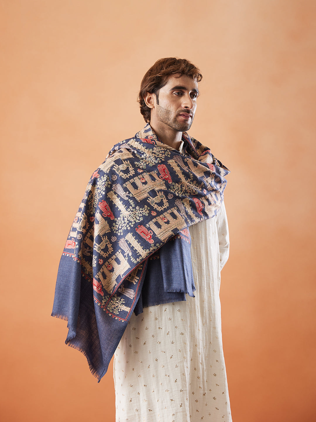 Kalamkari shawls are exquisite pieces of textile artistry originating from India, renowned for their intricate designs and vibrant colors. The term "Kalamkari" derives from two Persian words, "kalam" meaning pen and "kari" meaning craftsmanship, reflecting the technique of hand-painting or block-printing intricate patterns on fabric.