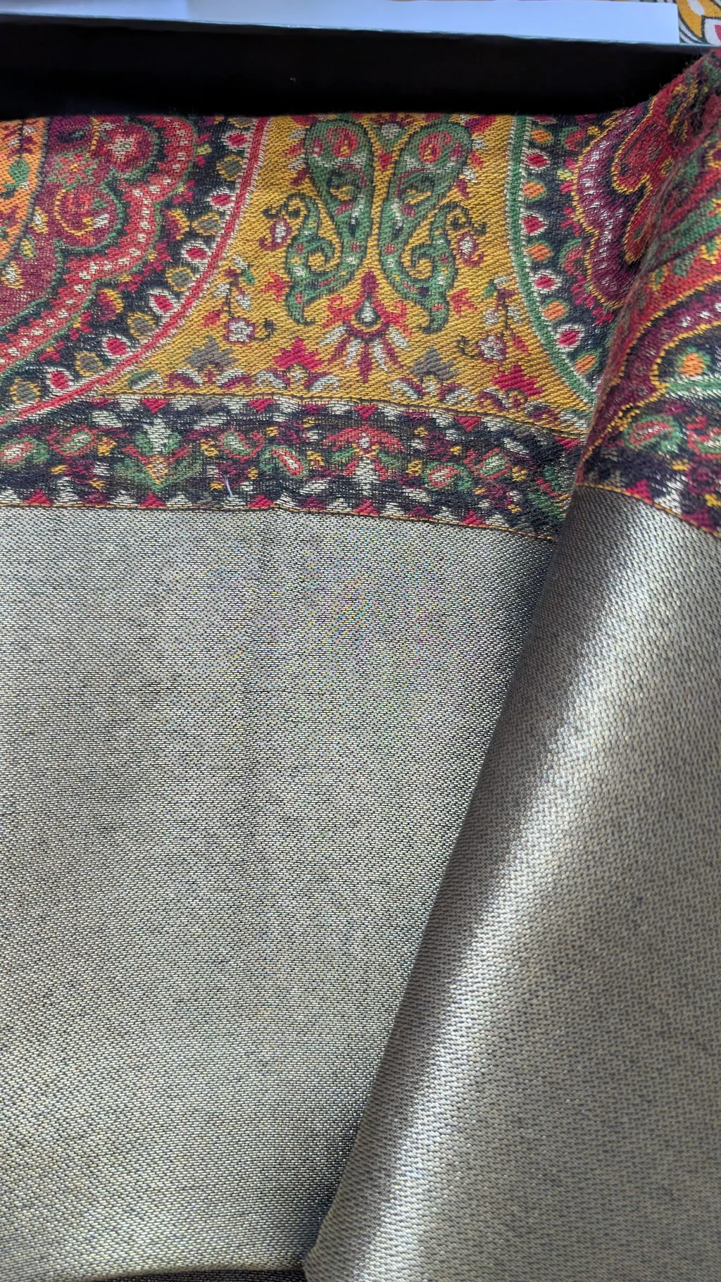 - Gracefully drape the Kaani shawl over your shoulders, allowing its intricate patterns to shine. Pair it with formal wear for a touch of opulence, or wrap it loosely with casual attire for a fusion of tradition and modernity. The Kaani shawl's elegance elevates any outfit, making it a versatile fashion statement.