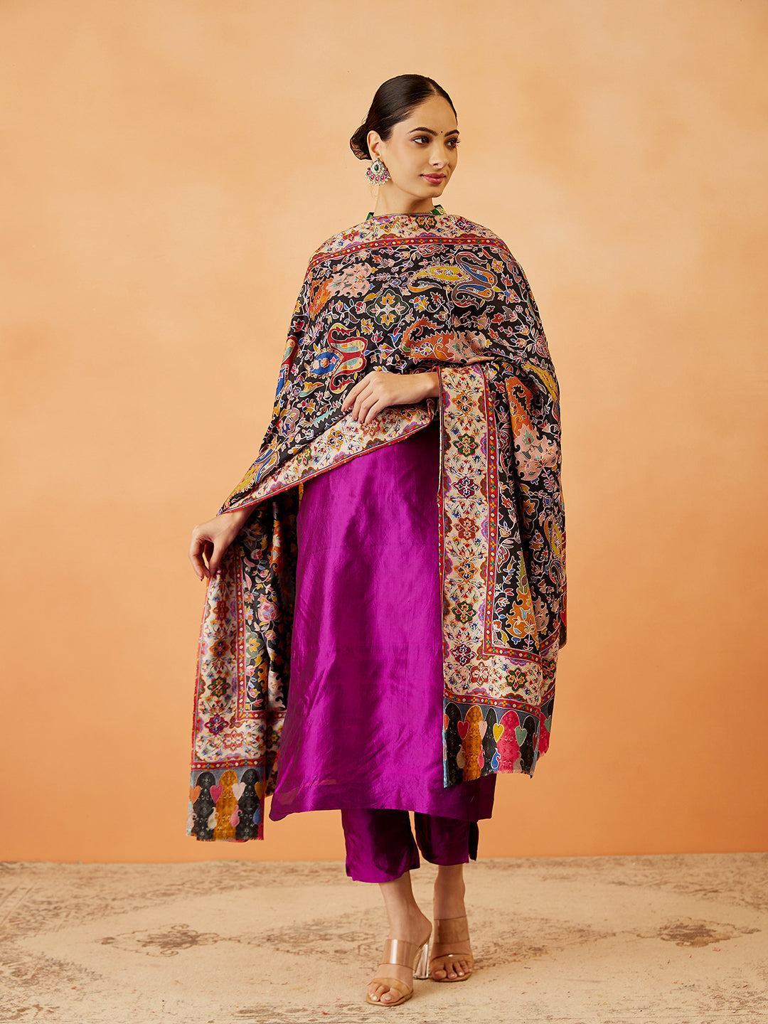 Women Zarmina Kalamkari Embroidered Shawl (Size: 101x203 CM)