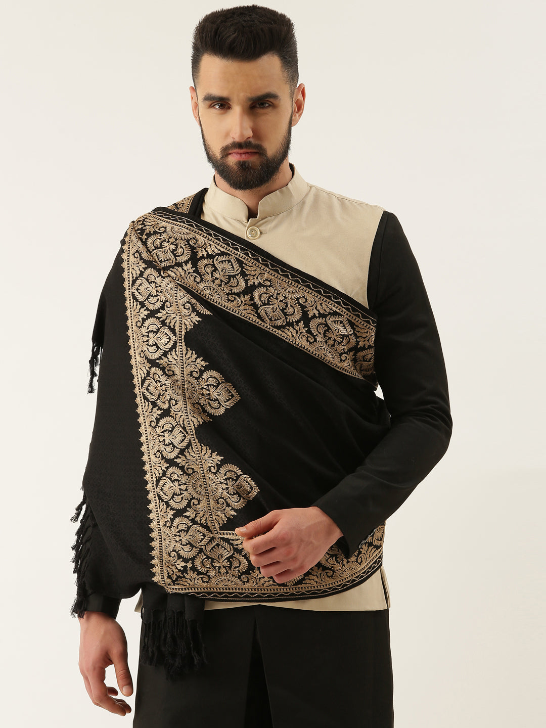 - This ostentatious Kashmiri shawl is adorned with intricate and meticulous paisley and floral embroidery designs tracing their roots to centuries old Kashmiri heritage. The underlying soft bamboo fabric drapes naturally over your shoulders, while giving a warm and luxe feel.